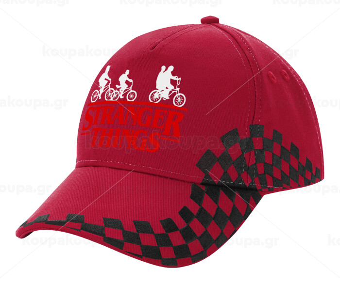 Stranger Things red, Καπέλο Ενηλίκων Ultimate ΚΟΚΚΙΝΟ/ΜΑΥΡΟ RACING με Σκρατς, (100% ΒΑΜΒΑΚΕΡΟ DRILL, ΕΝΗΛΙΚΩΝ, UNISEX, ONE SIZE)