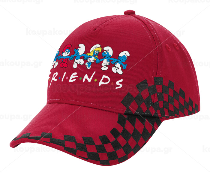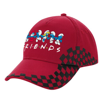 Friends Smurfs, Καπέλο Ενηλίκων Ultimate ΚΟΚΚΙΝΟ/ΜΑΥΡΟ RACING με Σκρατς, (100% ΒΑΜΒΑΚΕΡΟ DRILL, ΕΝΗΛΙΚΩΝ, UNISEX, ONE SIZE)