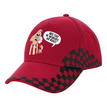 Τάκης, Άντε γεια, με ανώμαλους δεν μιλάω!, Καπέλο Ενηλίκων Ultimate ΚΟΚΚΙΝΟ/ΜΑΥΡΟ RACING με Σκρατς, (100% ΒΑΜΒΑΚΕΡΟ DRILL, ΕΝΗΛΙΚΩΝ, UNISEX, ONE SIZE)