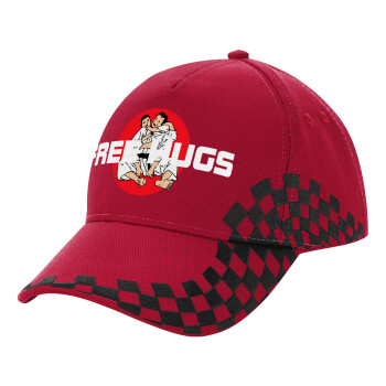 JUDO free hugs, Καπέλο Ενηλίκων Ultimate ΚΟΚΚΙΝΟ/ΜΑΥΡΟ RACING με Σκρατς, (100% ΒΑΜΒΑΚΕΡΟ DRILL, ΕΝΗΛΙΚΩΝ, UNISEX, ONE SIZE)