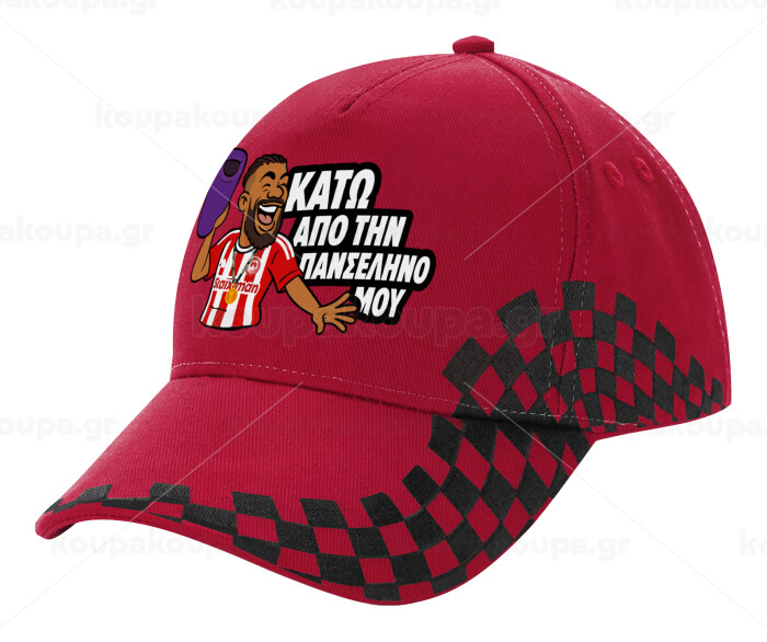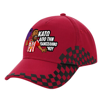 Ροντινέι, "ΚΑΤΩ ΑΠΟ ΤΗΝ ΠΑΝΣΕΛΗΝΟ ΜΟΥ!", Καπέλο Ενηλίκων Ultimate ΚΟΚΚΙΝΟ/ΜΑΥΡΟ RACING με Σκρατς, (100% ΒΑΜΒΑΚΕΡΟ DRILL, ΕΝΗΛΙΚΩΝ, UNISEX, ONE SIZE)
