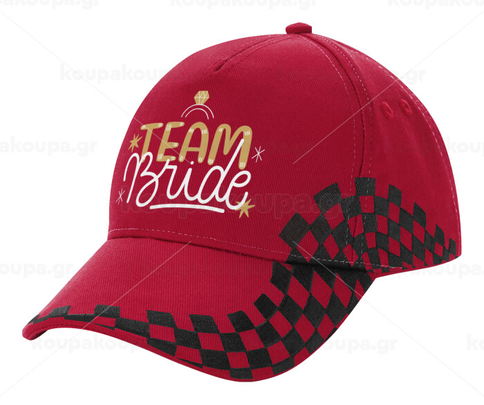 Team Bride Ruby, Καπέλο Ενηλίκων Ultimate ΚΟΚΚΙΝΟ/ΜΑΥΡΟ RACING με Σκρατς, (100% ΒΑΜΒΑΚΕΡΟ DRILL, ΕΝΗΛΙΚΩΝ, UNISEX, ONE SIZE)