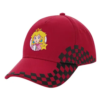 Princess Peach, Καπέλο Ενηλίκων Ultimate ΚΟΚΚΙΝΟ/ΜΑΥΡΟ RACING με Σκρατς, (100% ΒΑΜΒΑΚΕΡΟ DRILL, ΕΝΗΛΙΚΩΝ, UNISEX, ONE SIZE)