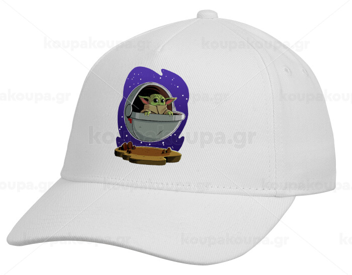 Baby Yoda mandalorian, Καπέλο Ενηλίκων Baseball, Drill, Λευκό (100% ΒΑΜΒΑΚΕΡΟ, ΕΝΗΛΙΚΩΝ, UNISEX, ONE SIZE)