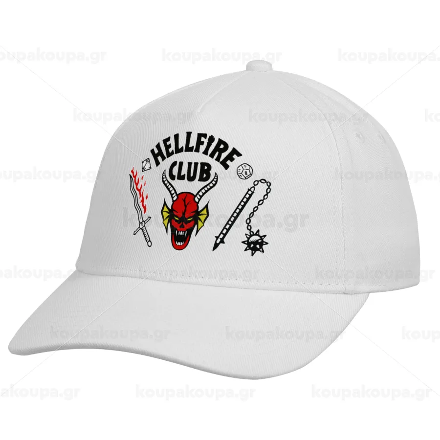 Hellfire CLub, Stranger Things, Καπέλο Ενηλίκων Baseball, Drill, Λευκό (100% ΒΑΜΒΑΚΕΡΟ, ΕΝΗΛΙΚΩΝ, UNISEX, ONE SIZE)