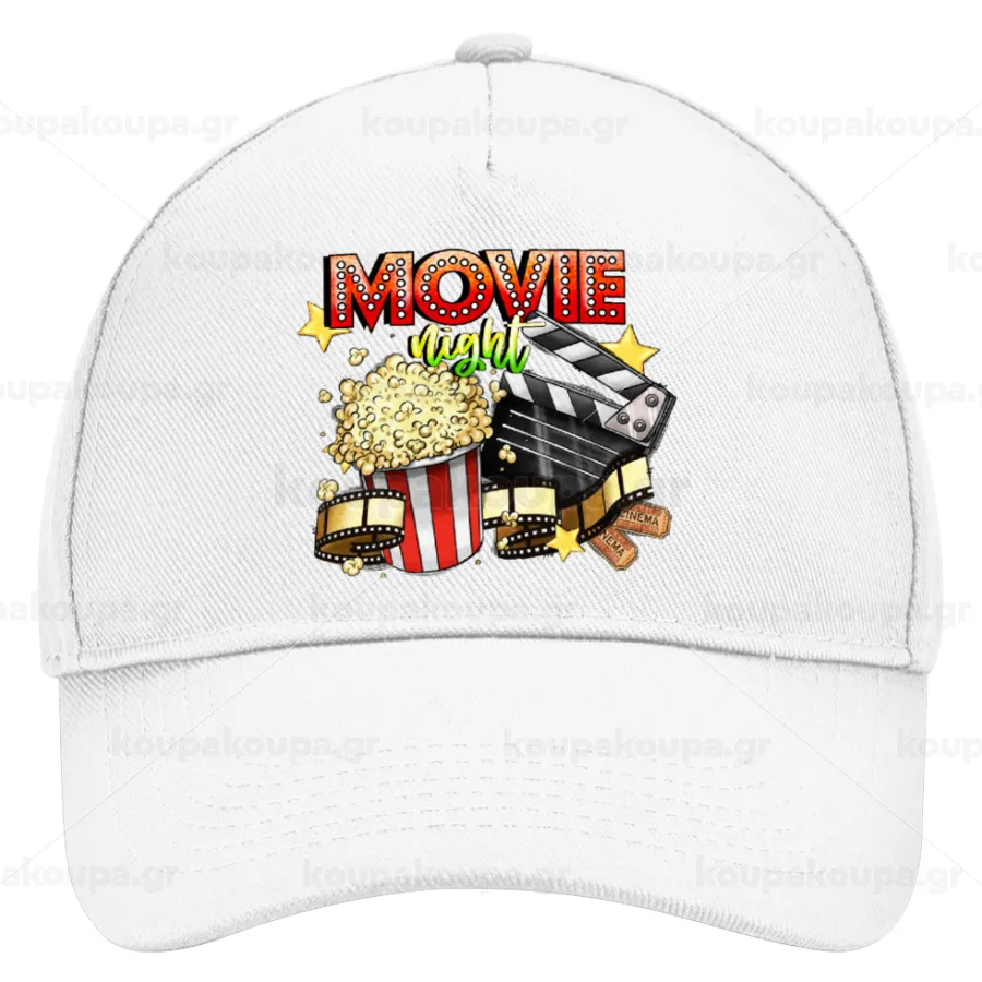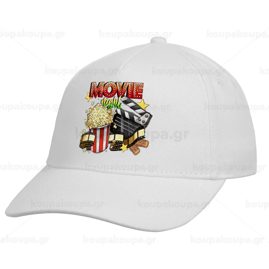 Movie night, Καπέλο Ενηλίκων Baseball, Drill, Λευκό (100% ΒΑΜΒΑΚΕΡΟ, ΕΝΗΛΙΚΩΝ, UNISEX, ONE SIZE)