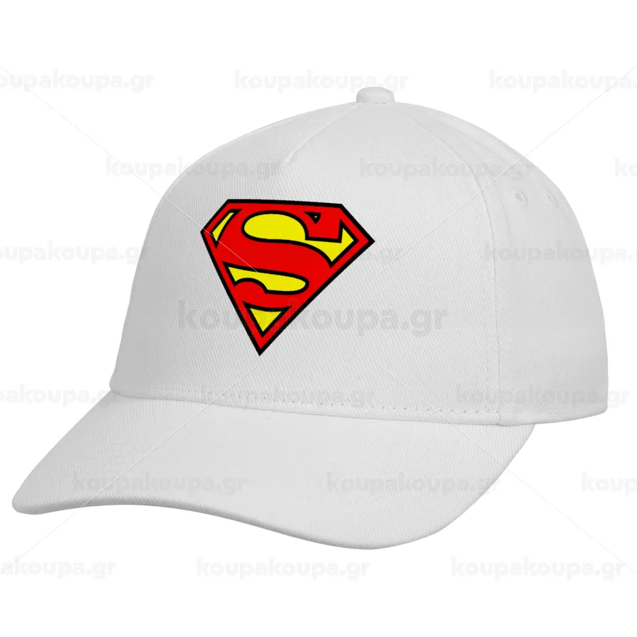 Superman vintage, Καπέλο Ενηλίκων Baseball, Drill, Λευκό (100% ΒΑΜΒΑΚΕΡΟ, ΕΝΗΛΙΚΩΝ, UNISEX, ONE SIZE)