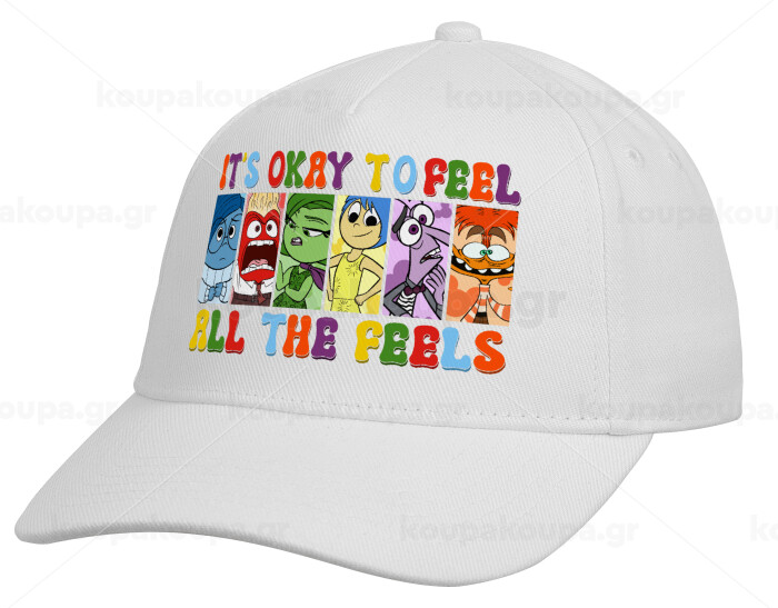 Inside Out It's Okay To Feel All The Feels , Καπέλο Ενηλίκων Baseball, Drill, Λευκό (100% ΒΑΜΒΑΚΕΡΟ, ΕΝΗΛΙΚΩΝ, UNISEX, ONE SIZE)
