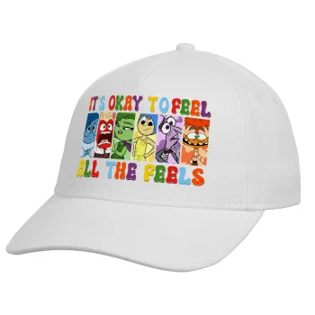 Inside Out It's Okay To Feel All The Feels , Καπέλο Ενηλίκων Baseball, Drill, Λευκό (100% ΒΑΜΒΑΚΕΡΟ, ΕΝΗΛΙΚΩΝ, UNISEX, ONE SIZE)