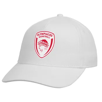 Olympiacos B.C., Καπέλο Ενηλίκων Baseball, Drill, Λευκό (100% ΒΑΜΒΑΚΕΡΟ, ΕΝΗΛΙΚΩΝ, UNISEX, ONE SIZE)
