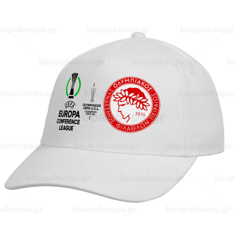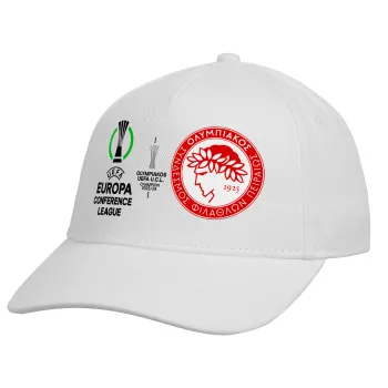Ολυμπιακός νικητής UEFA Europa Conference League Champion 2023/24, Καπέλο Ενηλίκων Baseball, Drill, Λευκό (100% ΒΑΜΒΑΚΕΡΟ, ΕΝΗΛΙΚΩΝ, UNISEX, ONE SIZE)
