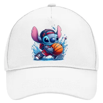 Stitch Basketball, Καπέλο Ενηλίκων Baseball, Drill, Λευκό (100% ΒΑΜΒΑΚΕΡΟ, ΕΝΗΛΙΚΩΝ, UNISEX, ONE SIZE)