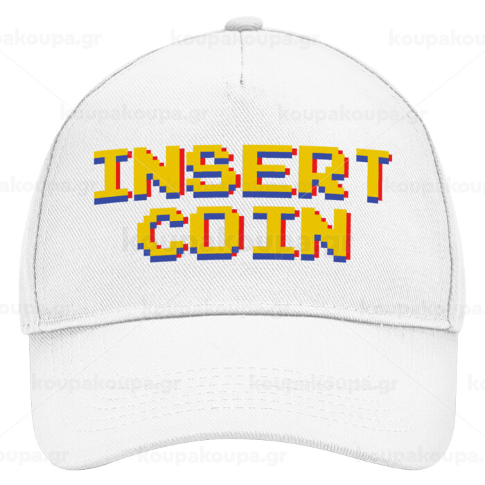 Insert coin!!!, Καπέλο Ενηλίκων Baseball, Drill, Λευκό (100% ΒΑΜΒΑΚΕΡΟ, ΕΝΗΛΙΚΩΝ, UNISEX, ONE SIZE)