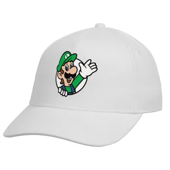 Super mario Luigi win, Καπέλο Ενηλίκων Baseball, Drill, Λευκό (100% ΒΑΜΒΑΚΕΡΟ, ΕΝΗΛΙΚΩΝ, UNISEX, ONE SIZE)