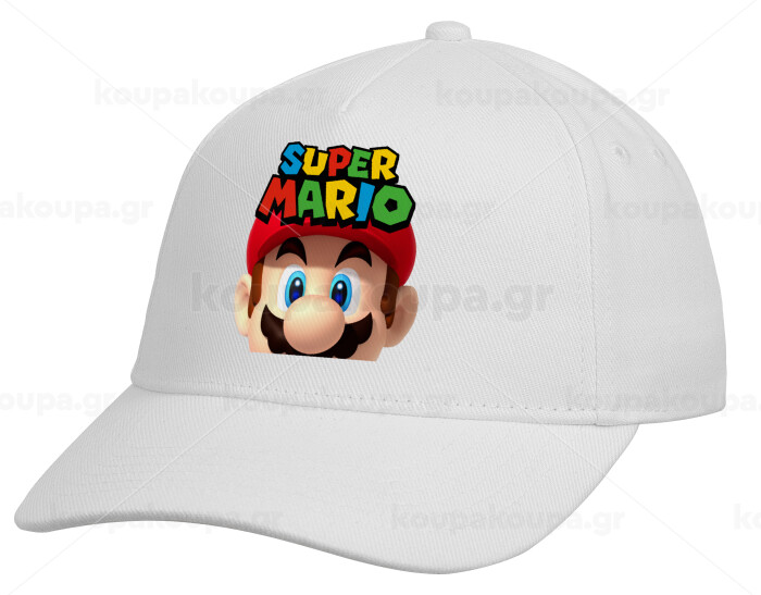 Super mario, Καπέλο Ενηλίκων Baseball, Drill, Λευκό (100% ΒΑΜΒΑΚΕΡΟ, ΕΝΗΛΙΚΩΝ, UNISEX, ONE SIZE)