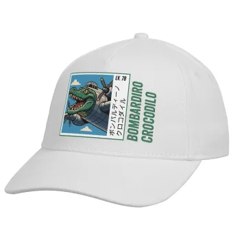 Bombardiro Crocodilo, Καπέλο Ενηλίκων Baseball, Drill, Λευκό (100% ΒΑΜΒΑΚΕΡΟ, ΕΝΗΛΙΚΩΝ, UNISEX, ONE SIZE)