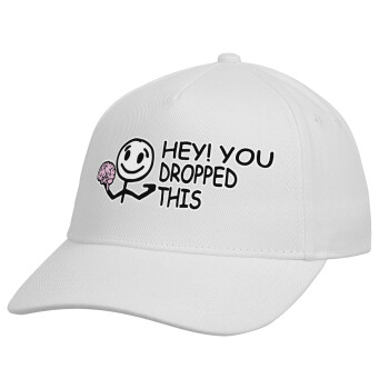Hey! You dropped this, Καπέλο Ενηλίκων Baseball, Drill, Λευκό (100% ΒΑΜΒΑΚΕΡΟ, ΕΝΗΛΙΚΩΝ, UNISEX, ONE SIZE)