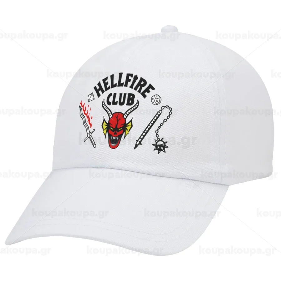 Hellfire CLub, Stranger Things, Καπέλο Ενηλίκων Baseball Λευκό 5-φύλλο (POLYESTER, ΕΝΗΛΙΚΩΝ, UNISEX, ONE SIZE)