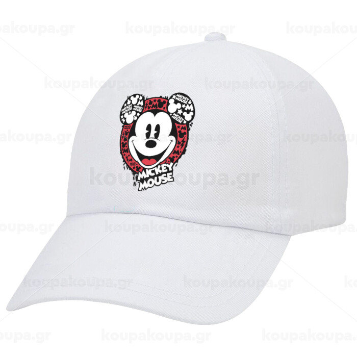 Mickey Mouse, Καπέλο Ενηλίκων Baseball Λευκό 5-φύλλο (POLYESTER, ΕΝΗΛΙΚΩΝ, UNISEX, ONE SIZE)