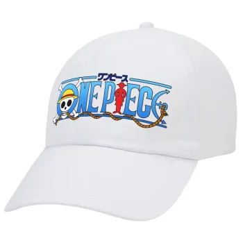 Onepiece logo, Καπέλο Ενηλίκων Baseball Λευκό 5-φύλλο (POLYESTER, ΕΝΗΛΙΚΩΝ, UNISEX, ONE SIZE)