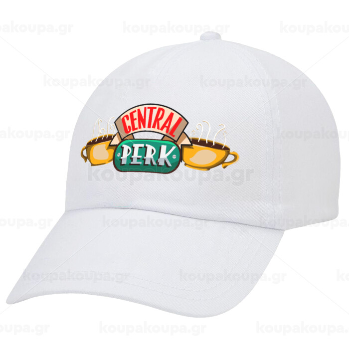 Central perk, Καπέλο Ενηλίκων Baseball Λευκό 5-φύλλο (POLYESTER, ΕΝΗΛΙΚΩΝ, UNISEX, ONE SIZE)