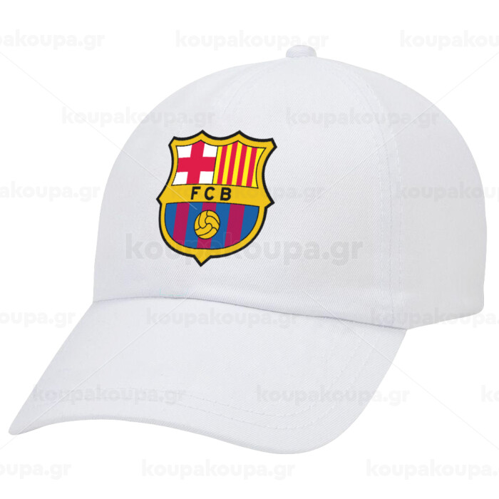 Barcelona FC, Καπέλο Ενηλίκων Baseball Λευκό 5-φύλλο (POLYESTER, ΕΝΗΛΙΚΩΝ, UNISEX, ONE SIZE)