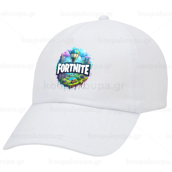 Fortnite land, Καπέλο Ενηλίκων Baseball Λευκό 5-φύλλο (POLYESTER, ΕΝΗΛΙΚΩΝ, UNISEX, ONE SIZE)
