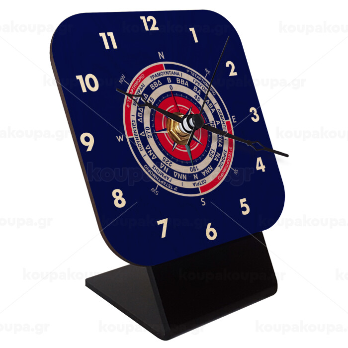 Ανεμολόγιο χάρτης πυξίδα ναυτικού, Επιτραπέζιο ρολόι σε φυσικό ξύλο (10cm)