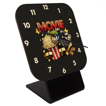 Movie night, Επιτραπέζιο ρολόι σε φυσικό ξύλο (10cm)