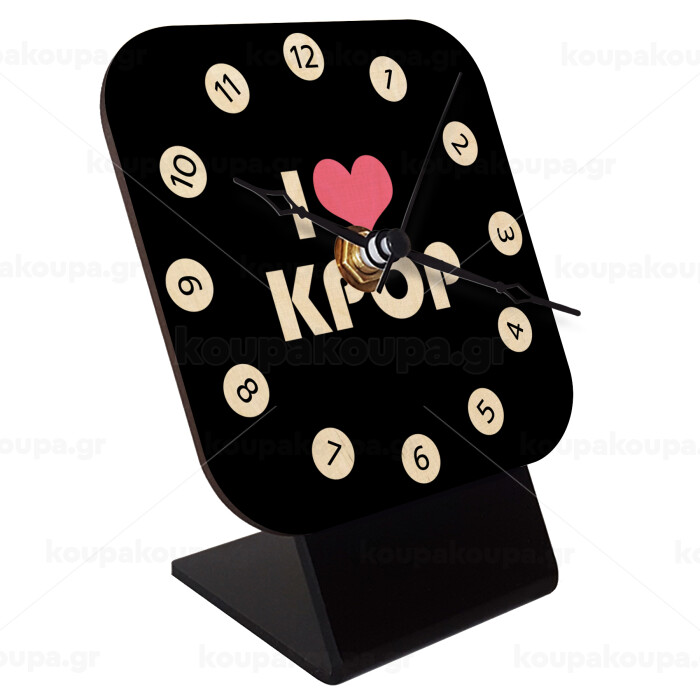 I Love KPOP, Επιτραπέζιο ρολόι σε φυσικό ξύλο (10cm)