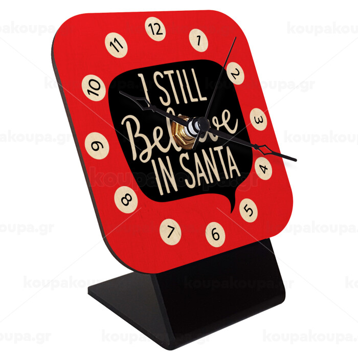 Ι still believe in santa, Επιτραπέζιο ρολόι σε φυσικό ξύλο (10cm)