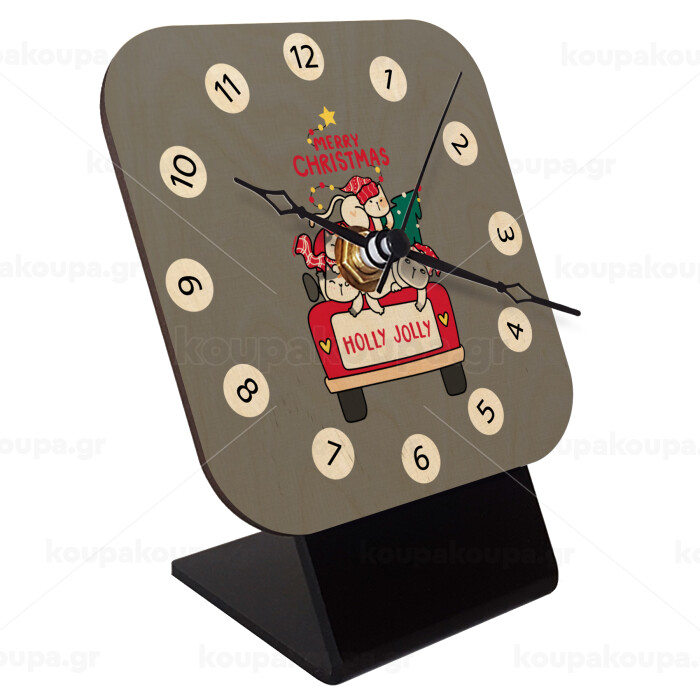 Merry Christmas cats in car, Επιτραπέζιο ρολόι σε φυσικό ξύλο (10cm)