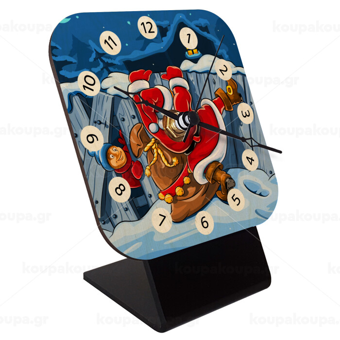Santa Night, Επιτραπέζιο ρολόι σε φυσικό ξύλο (10cm)