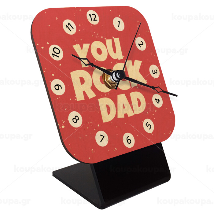 YOU ROCK DAD, Επιτραπέζιο ρολόι σε φυσικό ξύλο (10cm)