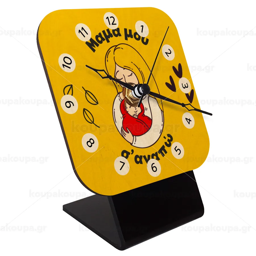 Μανούλα σ'αγαπώ αγκαλιά!, Επιτραπέζιο ρολόι σε φυσικό ξύλο (10cm)