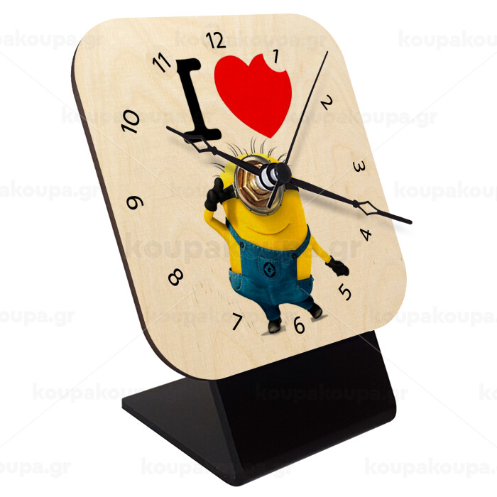 I love by minion, Επιτραπέζιο ρολόι σε φυσικό ξύλο (10cm)