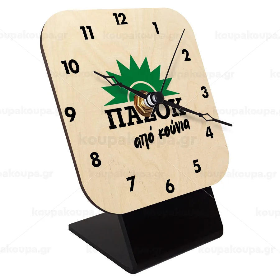 ΠΑΣΟΚ από κούνια, Επιτραπέζιο ρολόι σε φυσικό ξύλο (10cm)