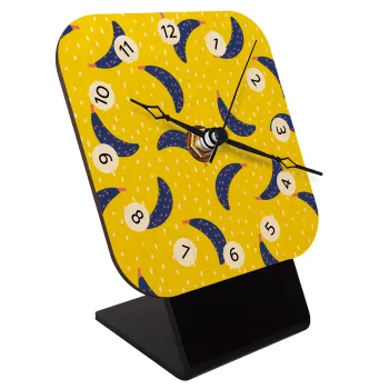 Yellow seamless with blue bananas, Επιτραπέζιο ρολόι σε φυσικό ξύλο (10cm)