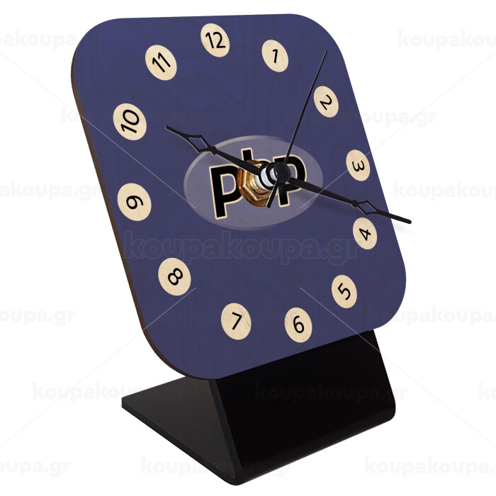 PHP, Επιτραπέζιο ρολόι σε φυσικό ξύλο (10cm)