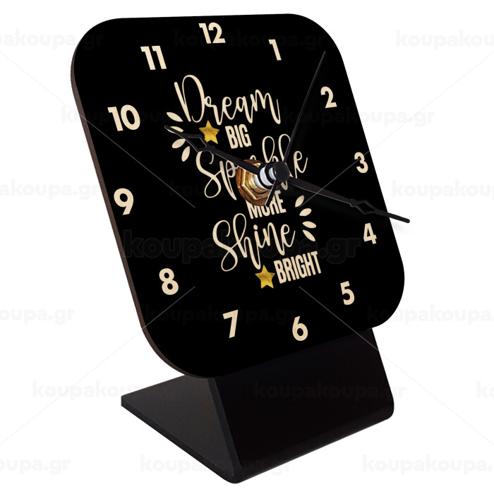 Dream big, Sparkle more, Shine bright, Επιτραπέζιο ρολόι σε φυσικό ξύλο (10cm)