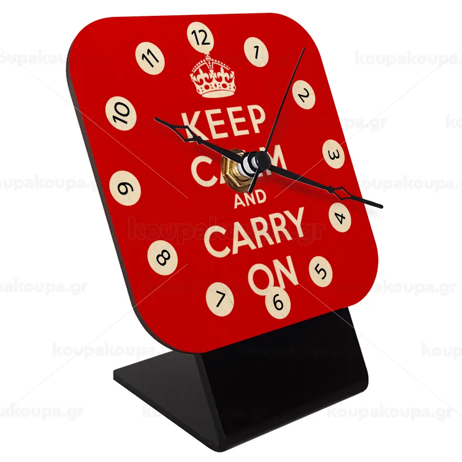 KEEP CALM  and carry on, Επιτραπέζιο ρολόι σε φυσικό ξύλο (10cm)