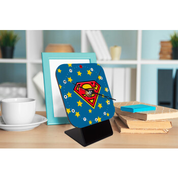 Superman Blue, Επιτραπέζιο ρολόι ξύλινο με δείκτες (10cm)