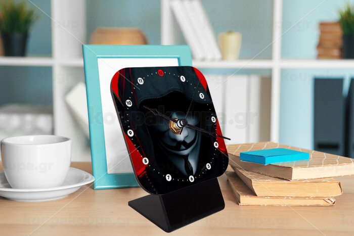 V for Vendetta, Επιτραπέζιο ρολόι ξύλινο με δείκτες (10cm)