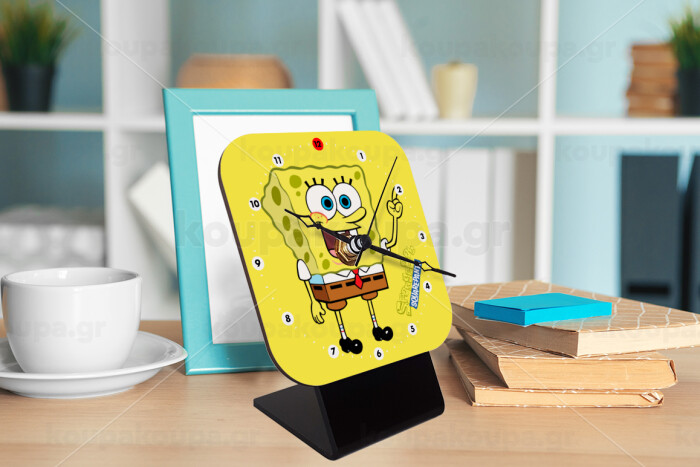 Μπομπ Σφουγγαράκης character, Επιτραπέζιο ρολόι ξύλινο με δείκτες (10cm)