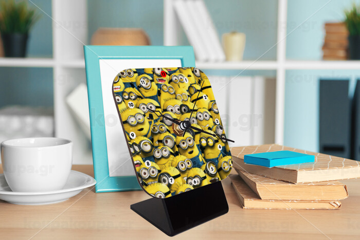 All the minions, Επιτραπέζιο ρολόι ξύλινο με δείκτες (10cm)