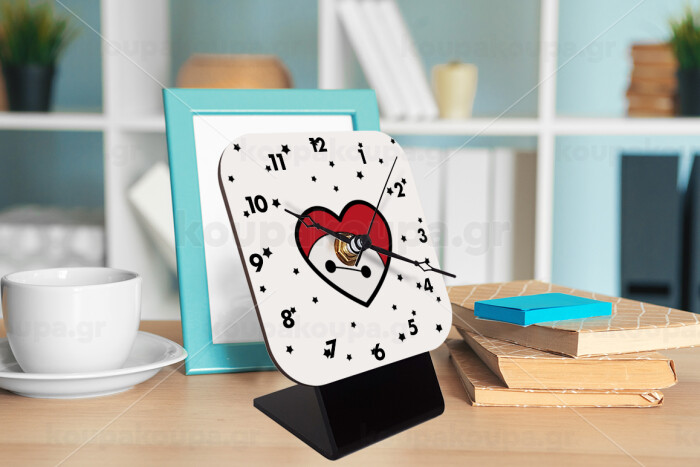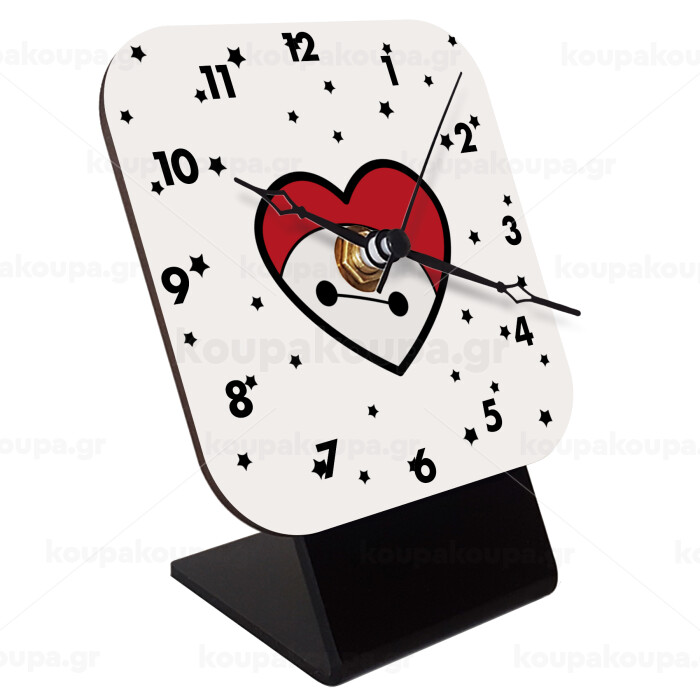 Baymax heart, Επιτραπέζιο ρολόι ξύλινο με δείκτες (10cm)
