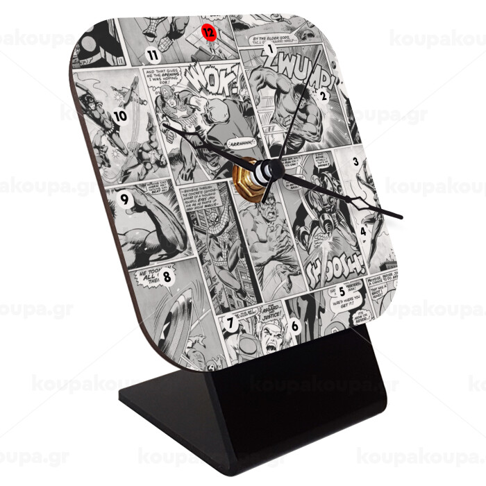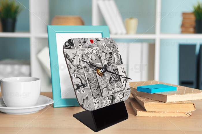 Classic comic Limited B/W, Επιτραπέζιο ρολόι ξύλινο με δείκτες (10cm)