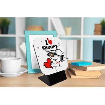 I LOVE SNOOPY, Επιτραπέζιο ρολόι ξύλινο με δείκτες (10cm)