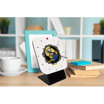Minions hi, Επιτραπέζιο ρολόι ξύλινο με δείκτες (10cm)