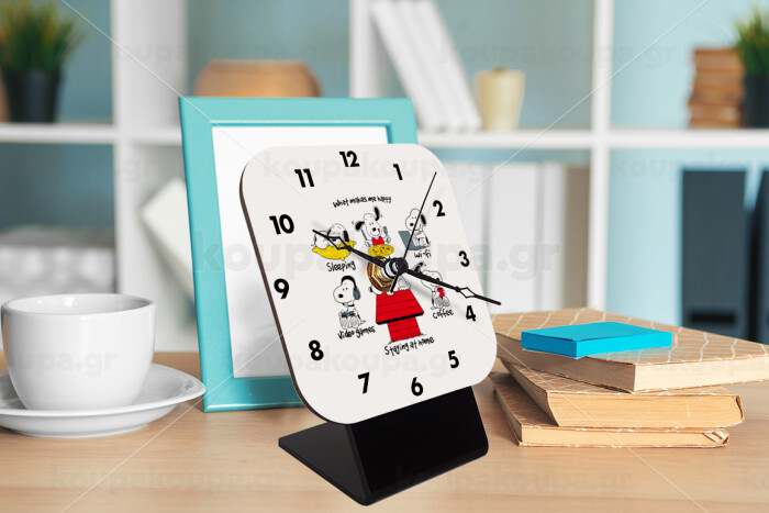 Snoopy what makes my happy, Επιτραπέζιο ρολόι ξύλινο με δείκτες (10cm)